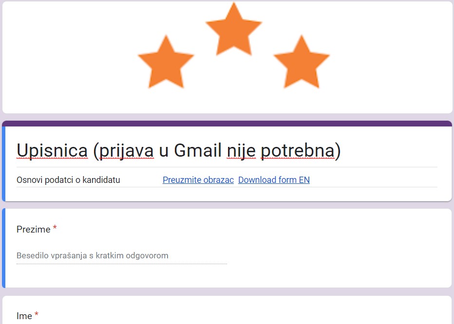 Preuzmite našu upisnicu ili je ispunite na Google forms